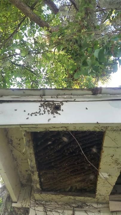 this is a soffit with just a few bees flying in and out looks like on the inside.[fb_vid id=”1249744101819070″]
